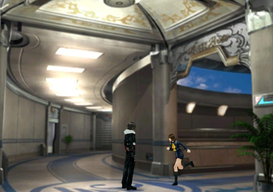 I remember firing up the game as if it were yesterday. I watched Squall rubbing his head in confusion in the hospital wing. We explored the school, Squall and I; this was the first video game I'd ever played where the main character felt less like a blank slate and more like a real person. He was stubborn and surly and boyish. I felt like he could just refuse to do what I asked, if he wanted to. I took him to the classrooms, to the dorm rooms, and to the cafeteria to learn about the hot dog shortages. What was this strange place that trained teenagers to become soldiers? What were draw points? Who was Seifer, and why did Squall hate him so much?