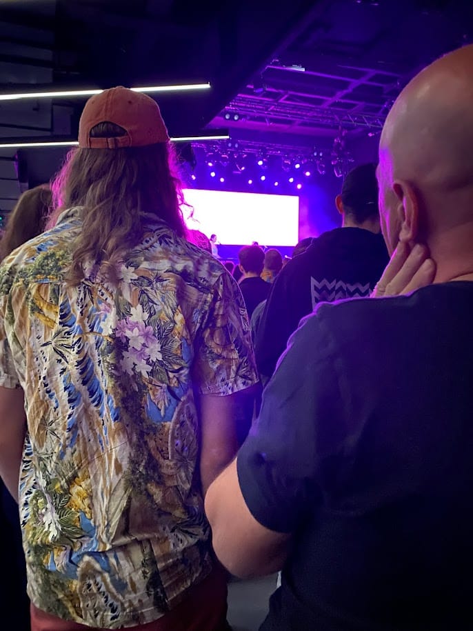 I don't normally people-watch at gigs. I don't normally watch anything, because I'm five feet tall and I never attend these things with the expectation of being able to see stuff. Since Covid, I find it harder to cope with crowds; we went to see Louis Cole a few months after Carly Rae Jepsen, and I wanted to be in the middle of everything, only to find myself nearly hyperventilating as people started crowding around us. We ended up standing way at the back, where I could see a little glimpse of Louis every now and then between swaying bodies, and I could breathe properly. I don't mind being back there, or up on the balcony, slightly removed. It doesn't impact my enjoyment. I just like hearing the music. I like the excitable buzz of it all.