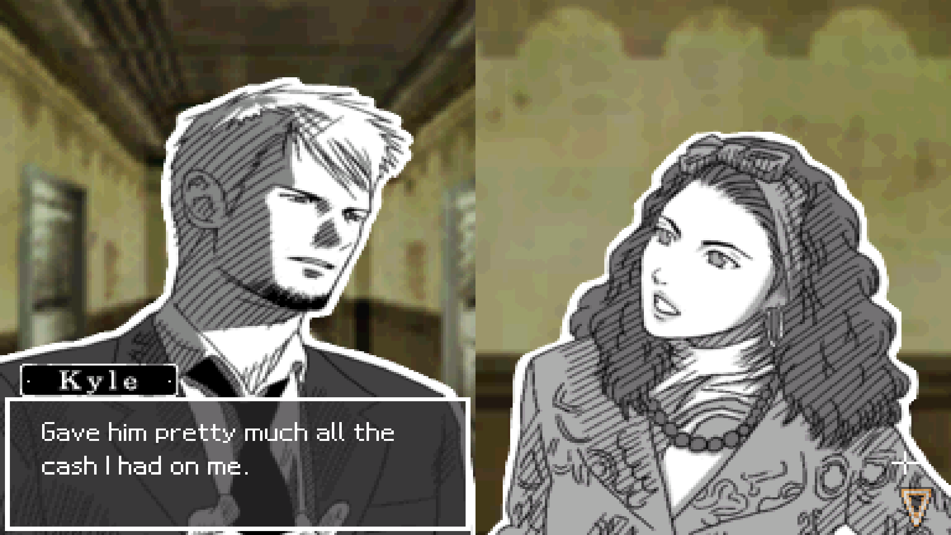 I do get that. But despite that, Hotel Dusk has some genuinely tense moments. You do fear for Kyle's life at least once, because over the course of many (many) lines of dialogue, you can't help but warm to him.