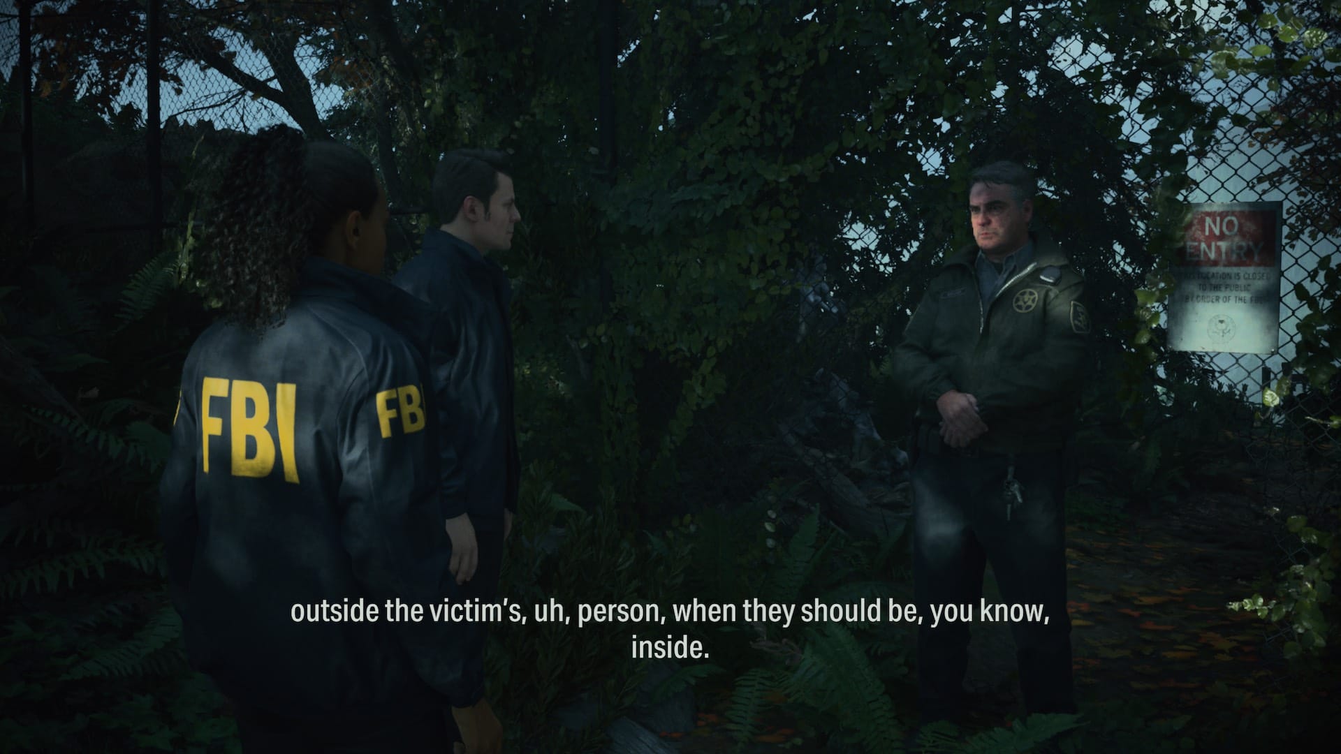 It descends into madness, I'd say. You find NPCs doing odd things, like a guy sitting on a bench mumbling to himself, twisting around as though in some kind of internal agony. And another person, hiding behind a lamppost for some reason. At one point, Alan and Saga are conversing and they are describing what needs to be done next and for a moment I broke out of the story and said 'This is actually ridiculous if you think about it.' It's overwhelming, surreal, and some of the story threads and symbolism slipped through my fingers the first time around. Too much to take in at once.