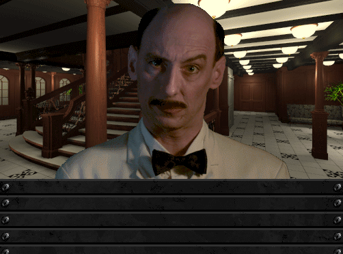 The game plonks you on the ship on the evening of April 14th, 1912. You're in a pretty nice cabin with a few items stashed in a locked trunk. There is an insistent knocking on the door. Answering it brings you face-to-face with this guy: