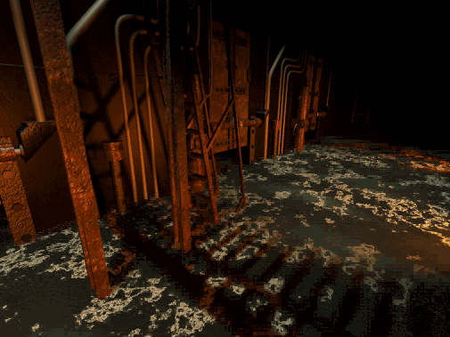 As time ticks by, the ship starts to break down. Suddenly, you'll be sprinting down the deck at a distinct tilt. And when the water starts flooding in, some areas will become inaccessible. It's possible to get a terrible ending if you don't do this bit right. (We got the best ending, but only because we followed a no-nonsense walkthrough on GameFAQs, as God intended.)