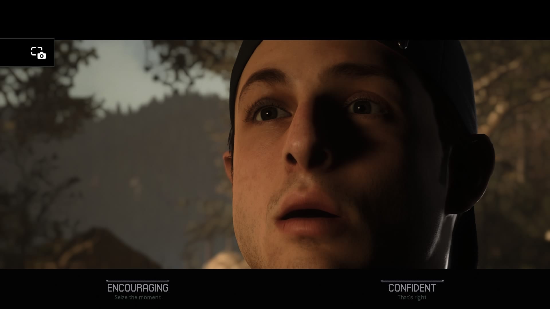 The Quarry is what I need at the moment. I find it quite comforting in a bloody, brutal sort of way. It's a little bit janky, too, on the PS4. When you're making decisions, the game will give you a minute to figure out what to do. The character will have a little think. Which makes them look spectacularly gormless. Like this: