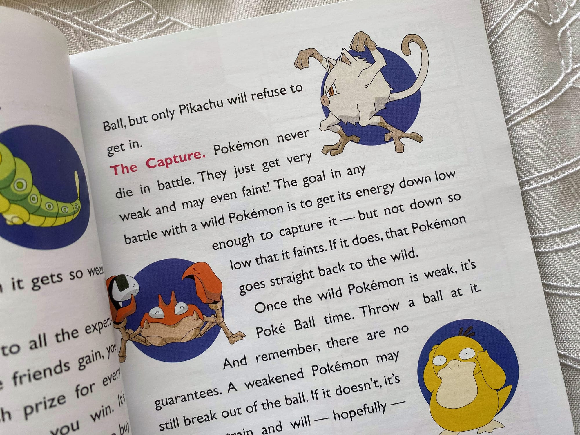 I love this book with my whole heart. This copy belonged to someone called Caroline, which I know because she signed her Official Pokemon License on the inside cover with a red pen and very neat, joined-up handwriting. Caroline, wherever you are, I hope you still love Pokemon as much as I do and haven't moved on with your life like a well-adjusted person.