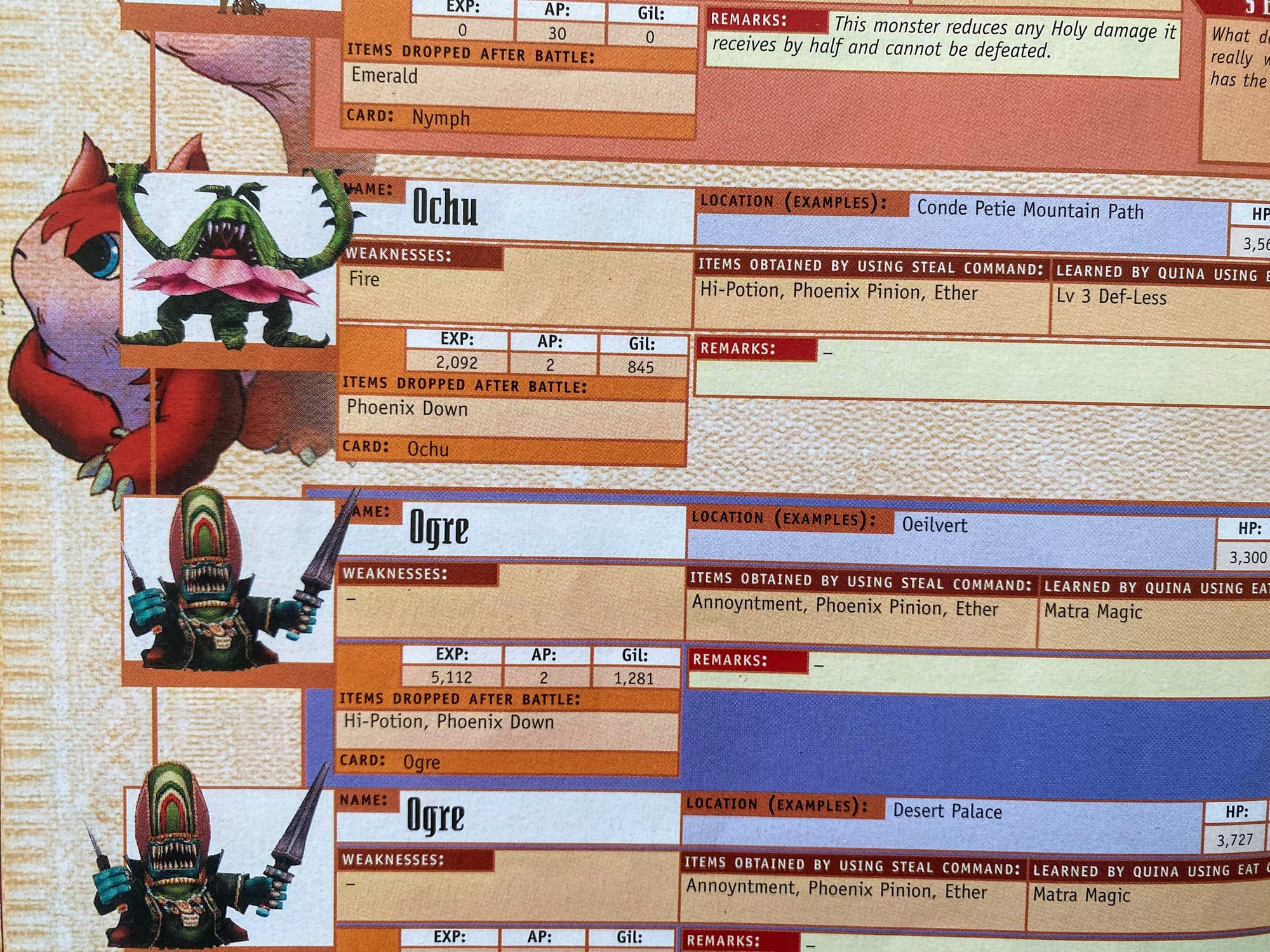 Now look, I'm really pushing the genre of 'bestiary' here, but stick with me. Both Chris and I have a copy of the Final Fantasy IX Official Strategy Guide and we brought them together when we got married which is sickening really, isn't it.