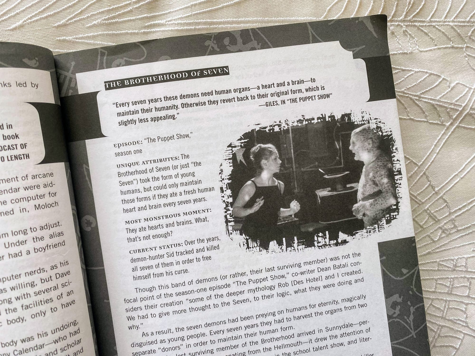 But it's packed with monstrous lore and I have a lot of time for it. It also has glossy photographs of the cast (which I loved, obviously), a long-form essay about demons, ghosts, and zombies in folklore/popular culture, and an interesting section on Faith and the human monster.